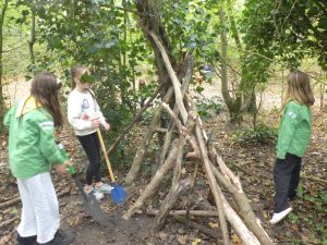Vandaag installeerden we drie Zonnestralen, we hadden een jarige en M nam afscheid en deed nog een laatste keer vol overgave mee. Als extra hulp bij de leiding was Mirjam paraat en onder haar bezielende enthousiasme maakten jullie drie fantastische hutten.