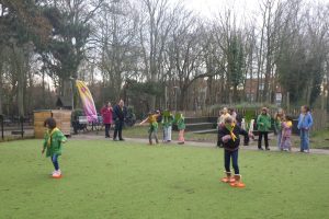 Als je klaar was en opgeruimd had kon je even lekker uitwaaien in de speeltuin, maar niet voordat je een leuk programmaonderdeel voor de komende weken had gelanceerd.