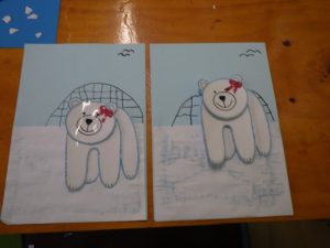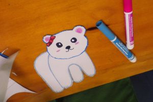 Na de limoronde gingen we lekker aan de knutsel. We hadden als voorbeeld een ijsbeer in 3D gemaakt en daar waren jullie meteen verliefd op. Het voorbeeld zorgde ook voor veel nieuwe inspiratie, zo maakten sommigen meisjes hun eigen berengezicht en kreeg de beer ook strikjes, dassen en zelfs schoenen…..of waren het moonboots….