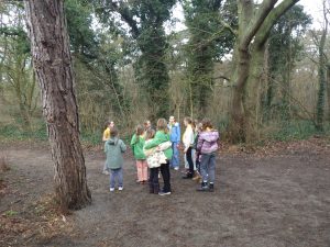 Omdat de twee grote vriendinnen A. en N. hadden gezegd dat ze eigenlijk ook nog wel het bos in wilden, vroegen we hen of ze een leuk spel wisten. Nou dat wisten ze wel. Na een flinke wandeling door het bos kwamen we bij een mooie driesprong en daar werd een heerlijke pot Toilettikkertje gedaan.